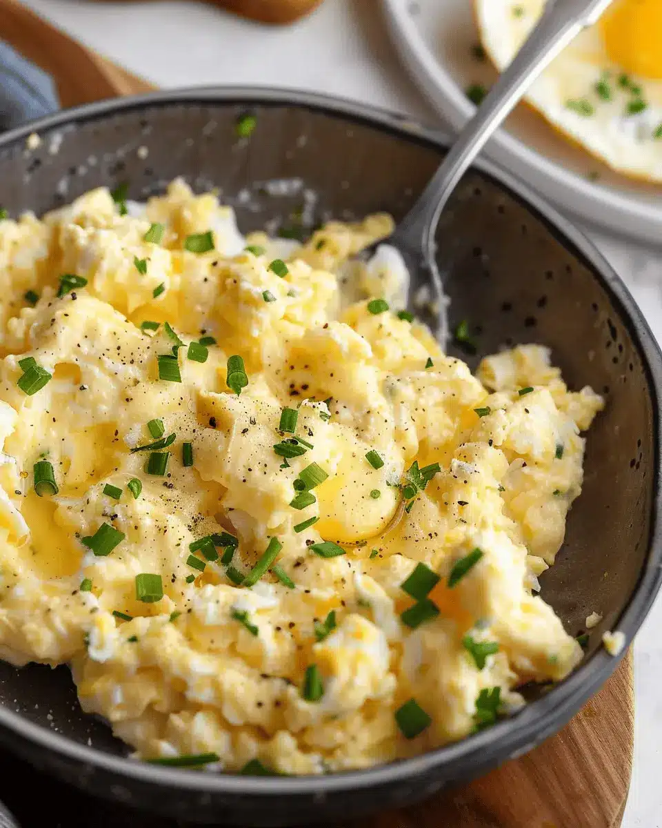 Imagine the rich, creamy texture of those eggs paired with the crispy goodness of turkey bacon. Not only does this elevate the dish, but it also provides an excellent source of lean protein. Simply cook the turkey bacon until it’s crispy, then chop it into bite-sized pieces. Stir in the pieces right before serving for that added crunch. The savory notes of the turkey bacon meld beautifully with the eggs, creating a harmonious breakfast dish that’s as satisfying as it is decadent.