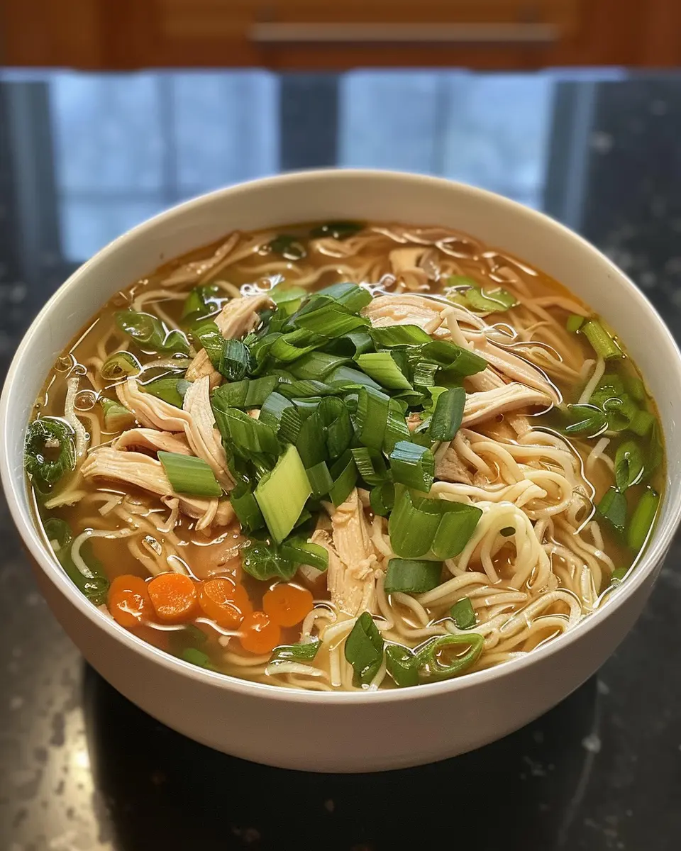 And voilà! Your Aromatic Ginger Scallion Chicken Noodle Soup is ready to be enjoyed. Serve hot, maybe with a slice of crusty bread, and watch your friends and family dive into this nourishing bowl of goodness.