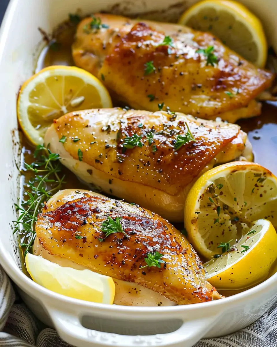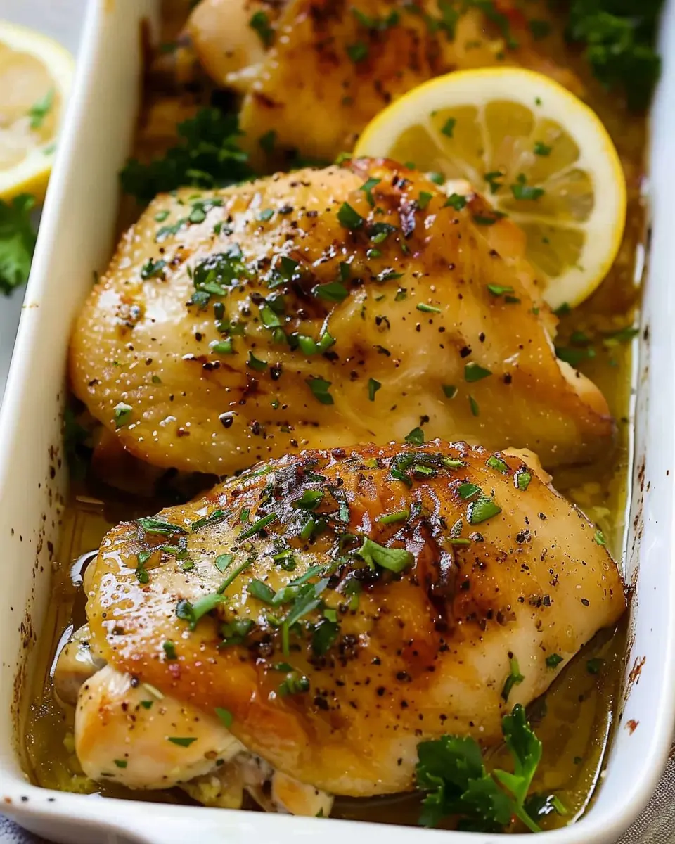 A delicious recipe for baked lemon chicken that combines the tangy flavor of lemon with tender, juicy chicken.