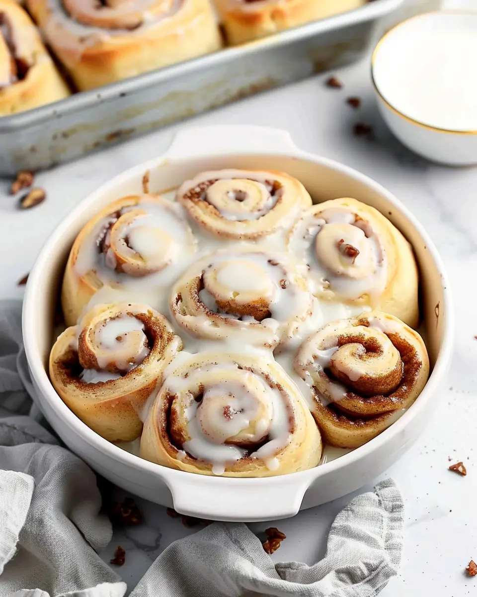 These cinnamon rolls are incredibly versatile and can serve as the star of both breakfast and dessert presentations. For breakfast, stack them on a cake stand with fresh fruits like berries for color. For dessert, consider serving them warm with a scoop of vanilla ice cream on the side. This will not only impress your guests but also create a cozy atmosphere, making every bite unforgettable.