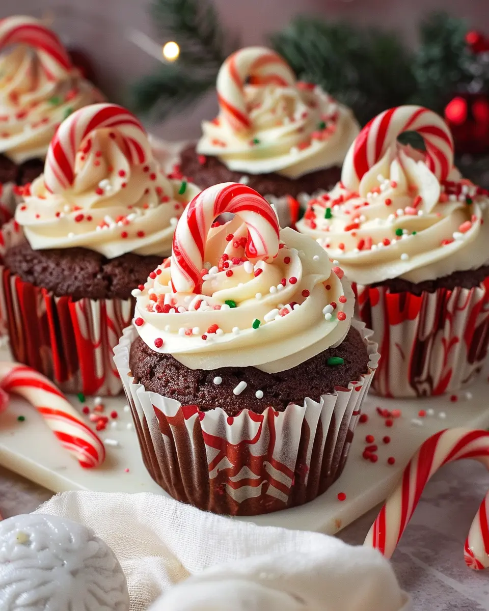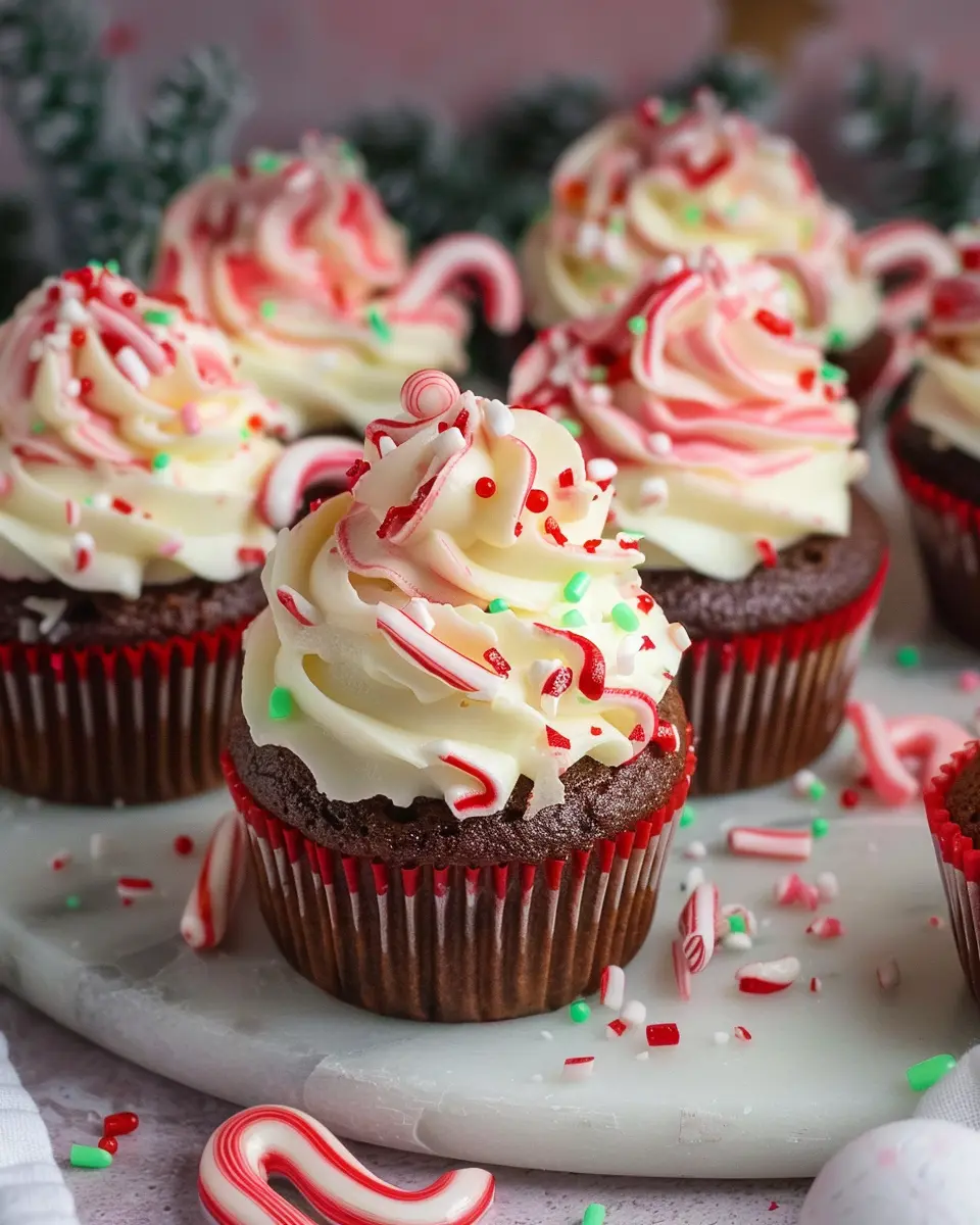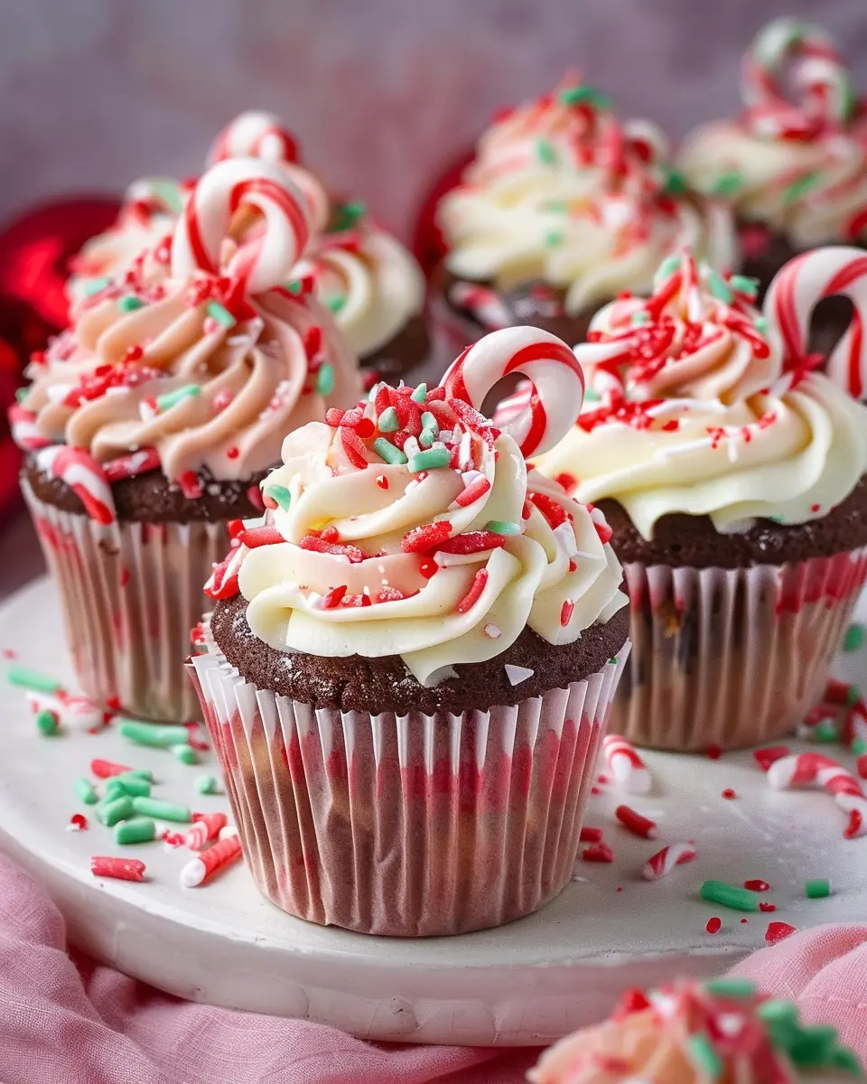 Delicious candy cane cupcakes perfect for holiday celebrations.