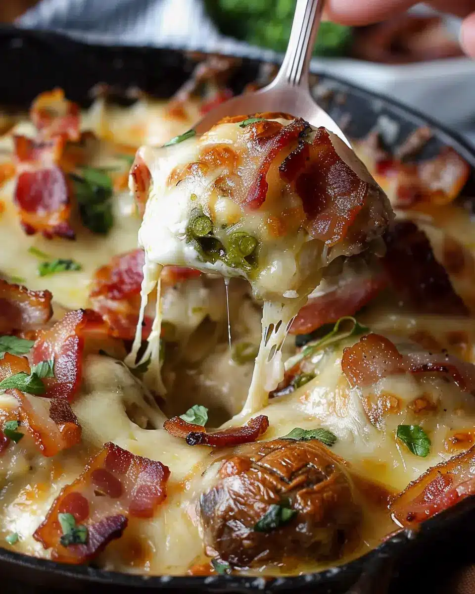 If you’re feeling fancy, drizzle a bit of truffle oil over the dish before serving. The earthy aroma beautifully contrasts with the cheese and turkey bacon, taking your dish to a whole new level.