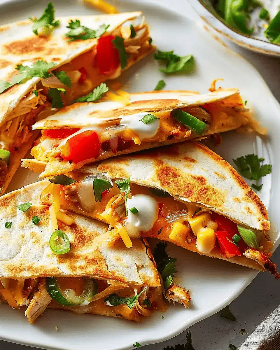 - Fresh Veggies: Use a mix of bell peppers, onions, and even corn for that extra crunch. Fresh ingredients can transform your Chicken Quesadillas from ordinary to extraordinary.