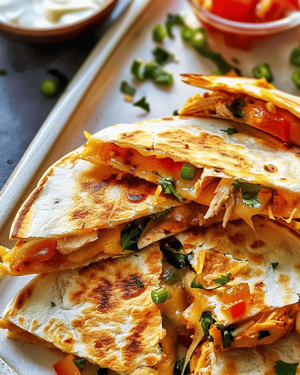 - Pair your Chicken Quesadillas with a fresh pico de gallo or a zesty avocado crema. These toppings not only enhance flavor but also add vibrant color to your dish.