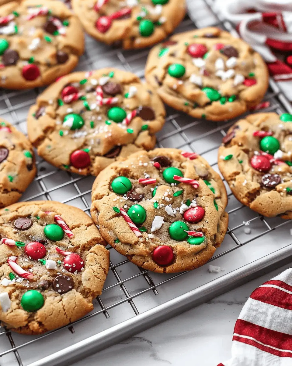 After baking, remove the cookies from the oven and let them cool on the baking sheet for about 5 minutes. This allows them to set before transferring them to a wire rack for complete cooling. Now, all that’s left is to dive in! Enjoy your Christmas Kitchen Sink Cookies with a warm mug of cocoa or share them with friends and family for some holiday cheer.