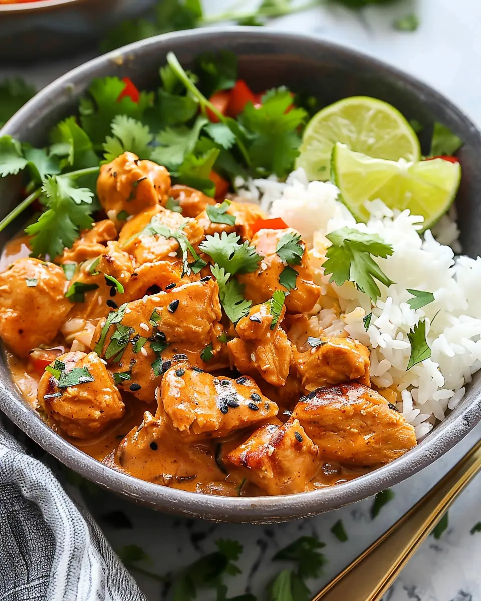 Now for the best part: serving! Spoon a generous portion of rice into a bowl, then ladle your coconut chicken and veggies right on top. Don’t forget to garnish with fresh cilantro and a squeeze of lime for that extra zing.