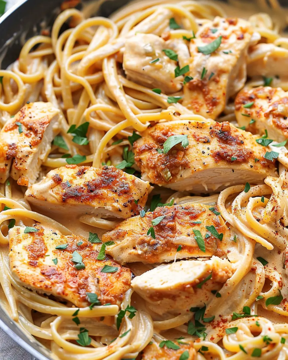 Storing your Creamy Cajun Chicken Pasta is easy! Allow it to cool completely, then transfer it to an airtight container. It should keep well in the refrigerator for up to 3–4 days. When you’re ready to enjoy it again, simply reheat it in a skillet over medium heat, adding a splash of broth or water to revive the creaminess. For longer storage, consider freezing portions in freezer-safe bags for up to 3 months. Just remember to let it thaw in the fridge overnight before reheating.