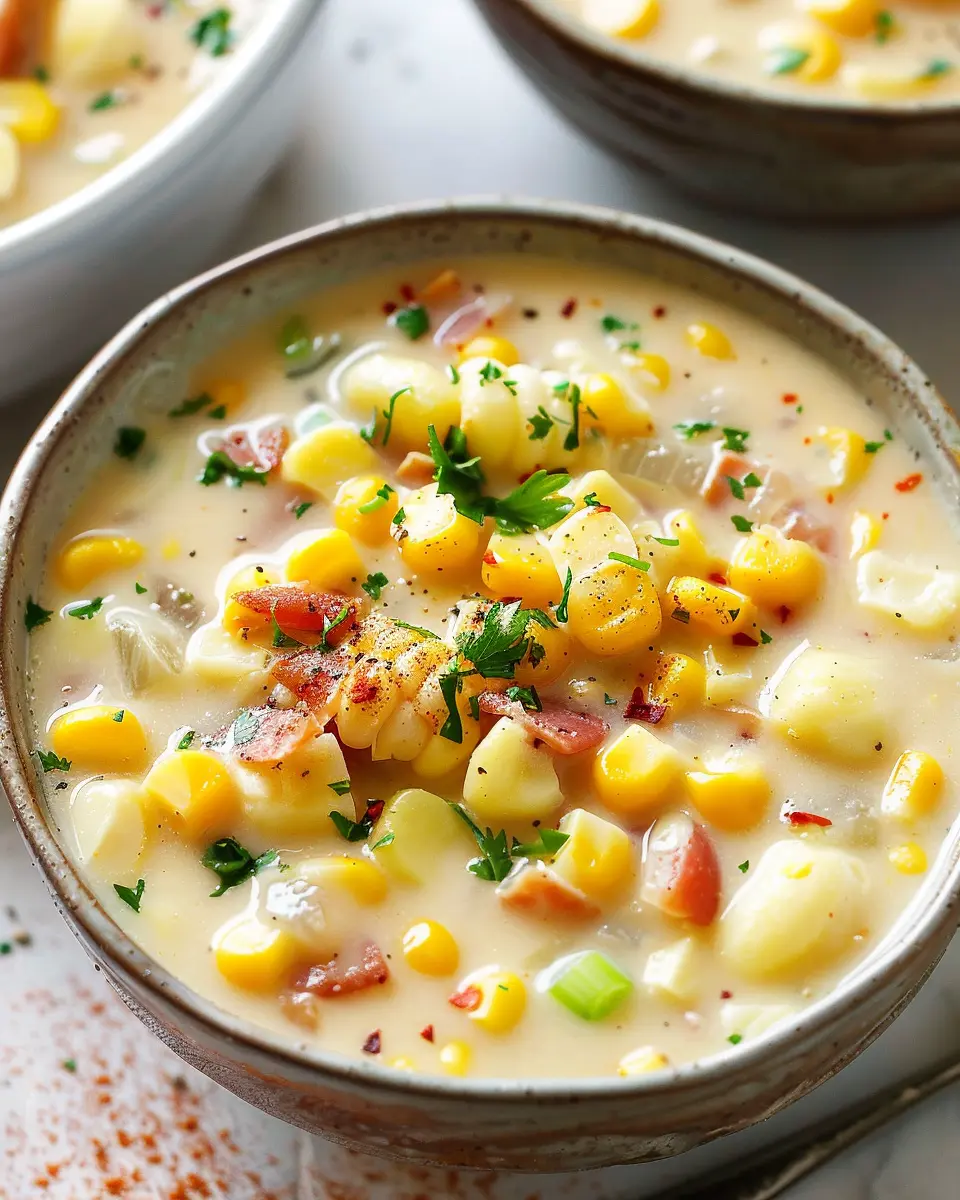 Keywords: Creamy Corn Chowder, Comfort Food, Turkey Bacon