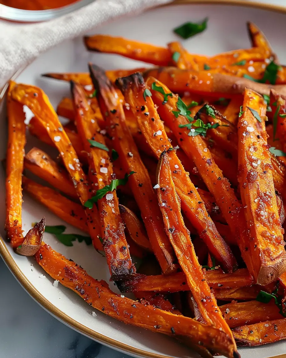 Let’s dive into the wholesome goodness of these crispy oven baked sweet potato fries.