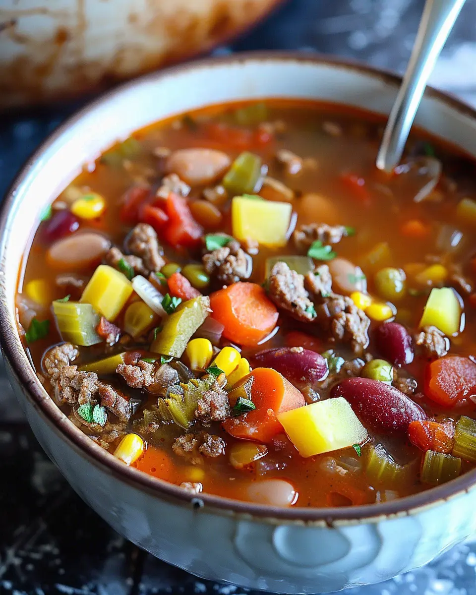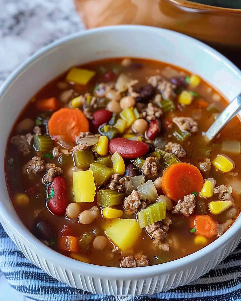 • Ground Beef: A hearty protein that makes the soup feel filling.