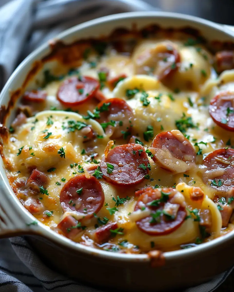 This casserole doesn’t just fill you up; it nourishes you too! With about 18 grams of protein per serving from the kielbasa and Turkey bacon, it helps repair and build tissues. Plus, the mix of potatoes and cheese contributes approximately 4 grams of fiber, aiding digestion and keeping you full longer.