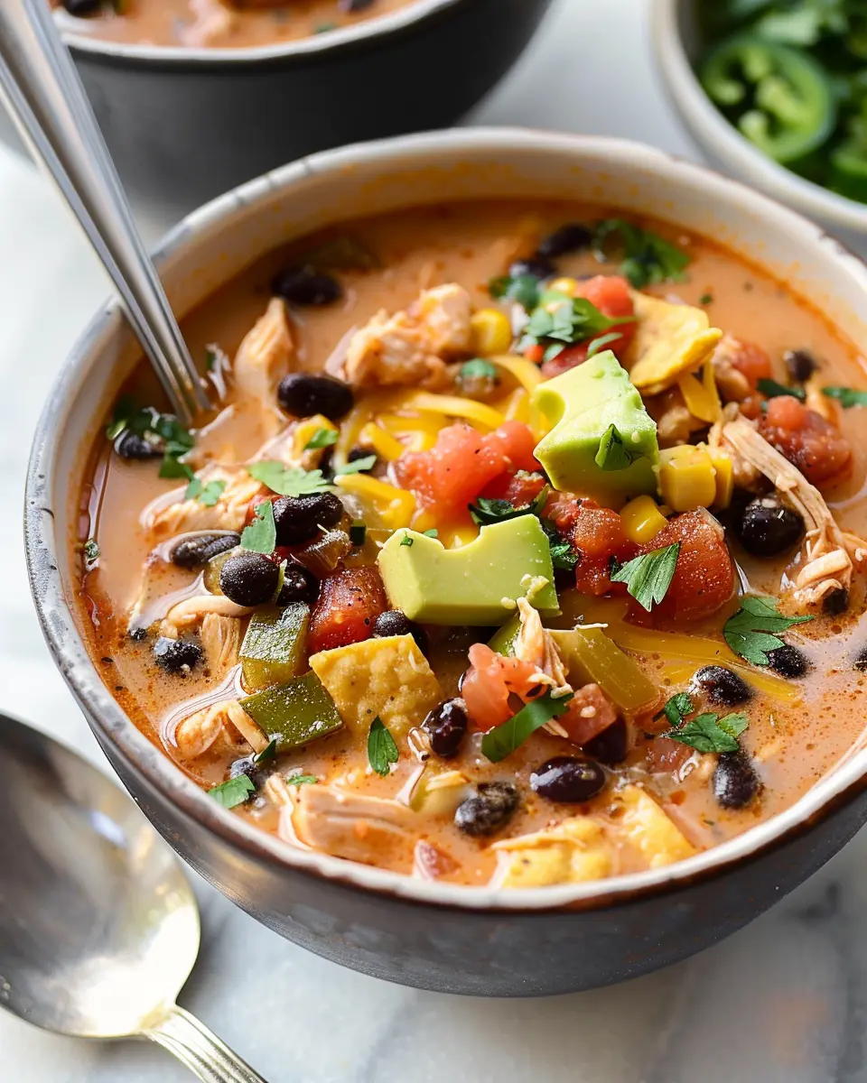 Need something meat-free? Don’t worry; you can still enjoy the deliciousness of easy chicken taco soup by swapping out the chicken for hearty ingredients like chickpeas or black beans. These proteins bring a satisfying texture and keep the soup filling. You can also add more veggies like zucchini or corn for added nutrition. If you want that chicken flavor, reach for a vegetarian chicken substitute or some mushrooms. Drizzle with avocado oil and garnish with fresh avocado slices for a killer finish.