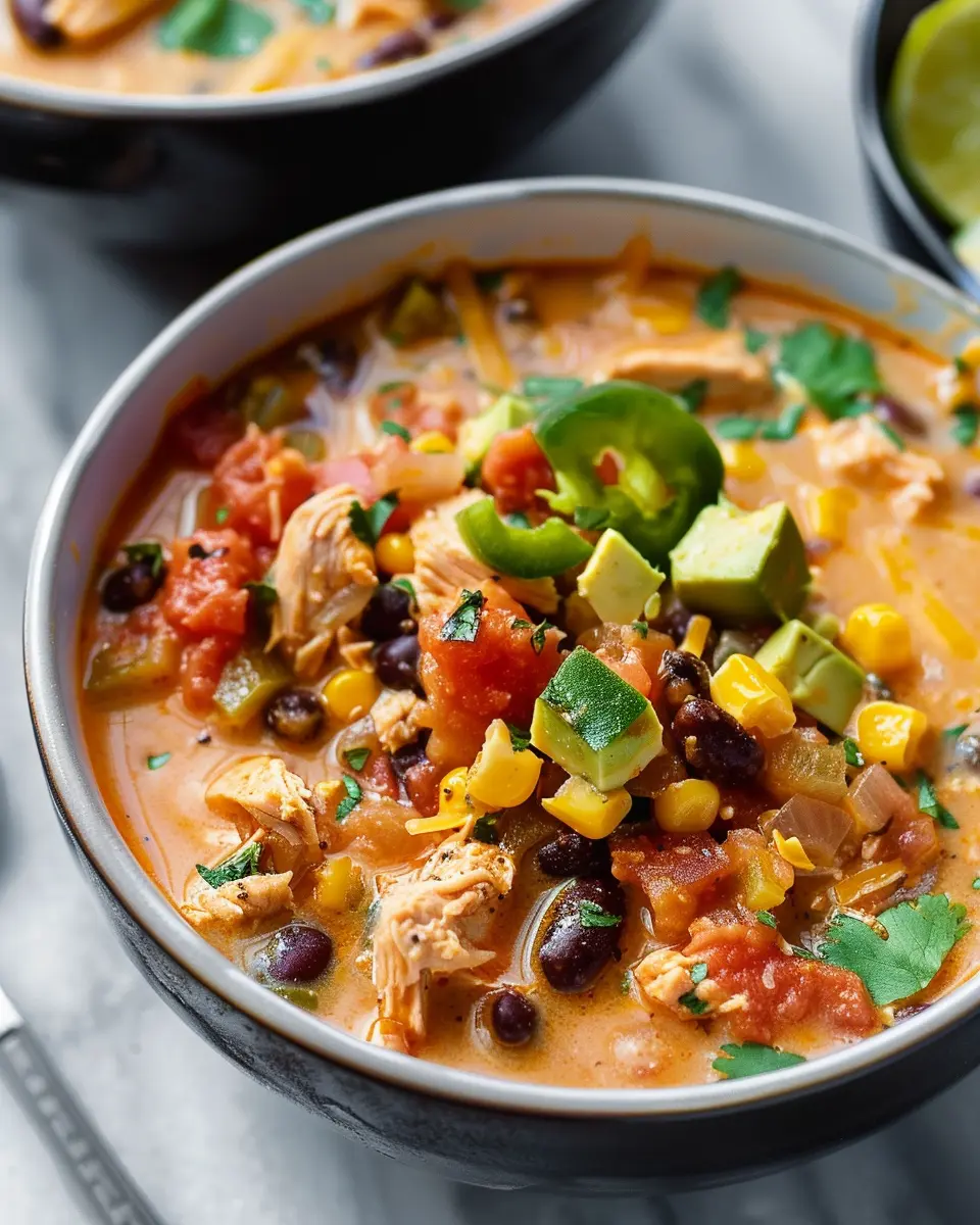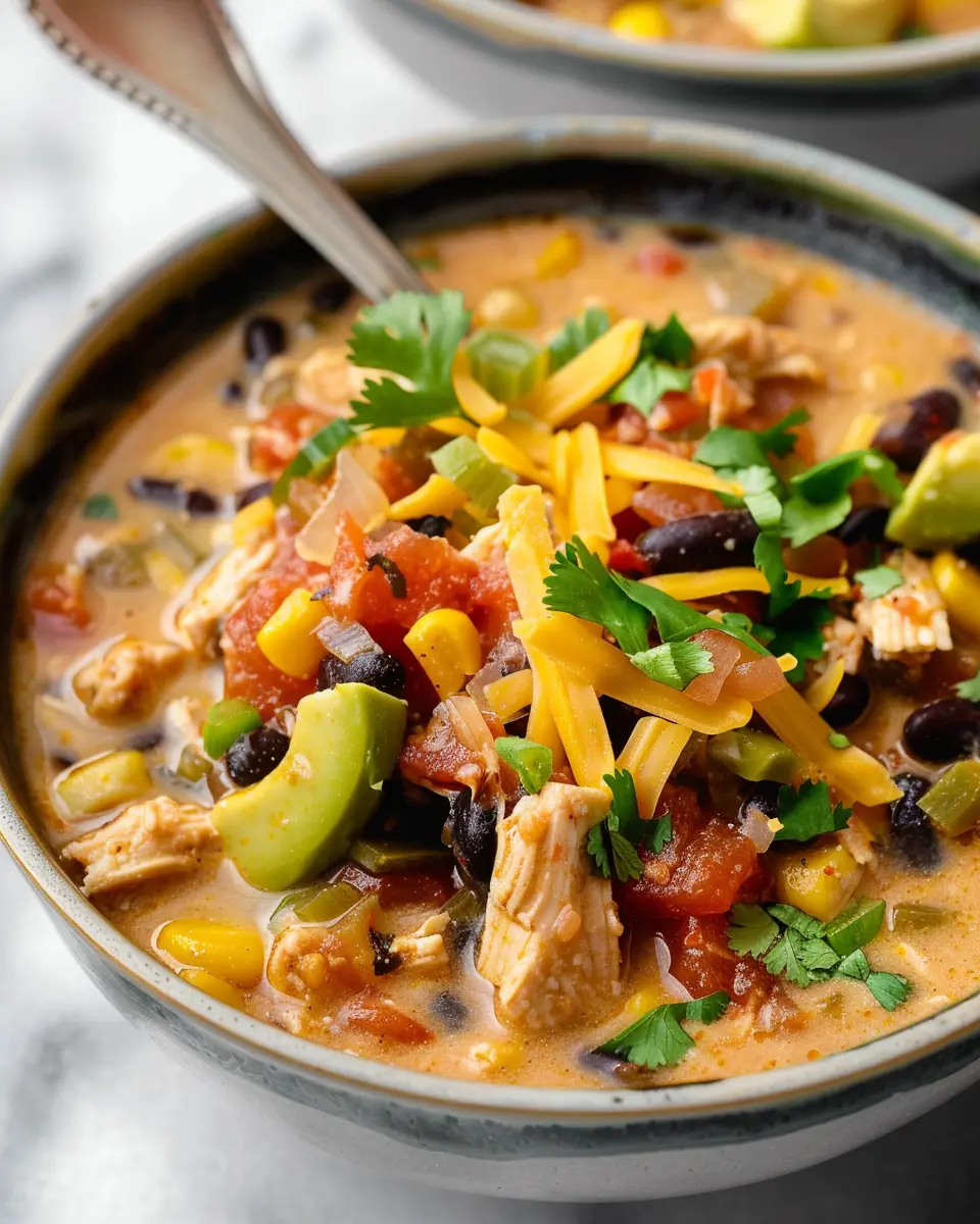 When it’s ready, serve your easy chicken taco soup in bowls topped with garnishments like fresh cilantro, avocado slices, or a dollop of sour cream. It’s the type of meal that brings people together—perfect for chilly evenings or casual gatherings.