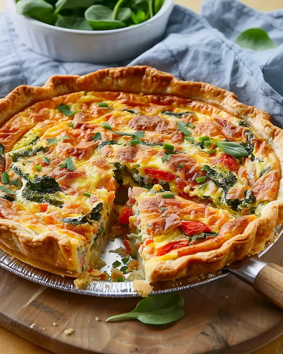 This Easy Loaded Vegetable Quiche is a delightful dish that incorporates turkey bacon and chicken ham, perfect for breakfast or brunch.