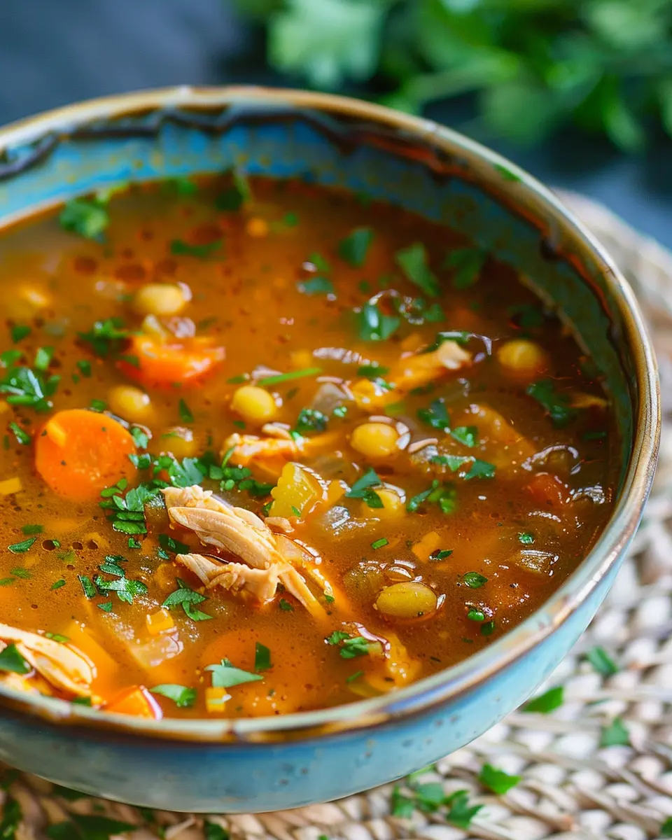 A comforting bowl of flavorful warmth, this Easy Moroccan Chicken Soup is perfect for cozy nights.