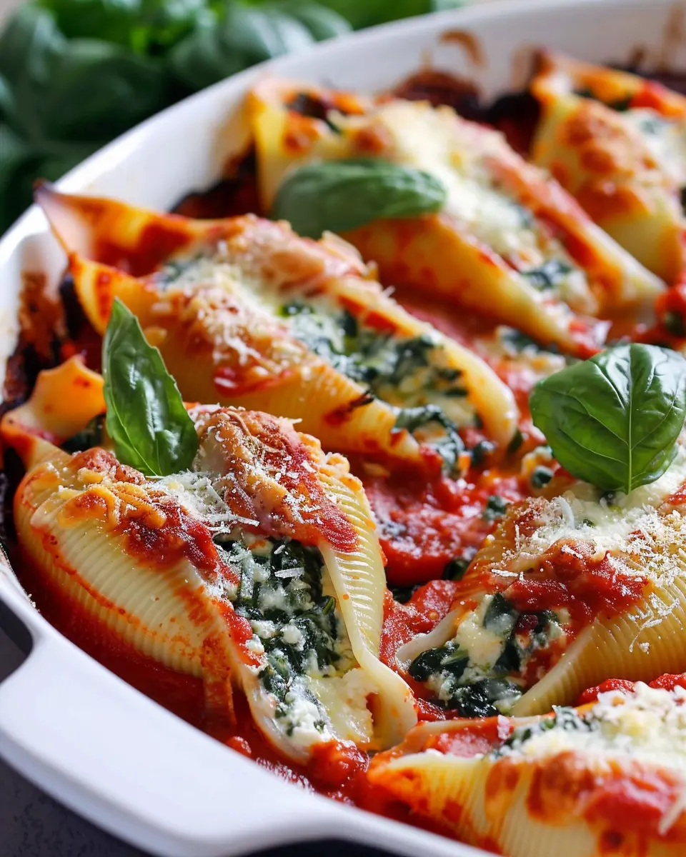 Absolutely! One of the best things about these easy spinach and ricotta stuffed shells is their flexibility. You can assemble them a day in advance, placing them in the baking dish and covering them with sauce, then store them in the fridge. When you’re ready to enjoy them, simply pop them in the oven and bake. This is perfect for those busy weeknights or if you’re hosting a gathering—just make sure to adjust your baking time, as they might need a bit longer when cooked straight from the fridge.