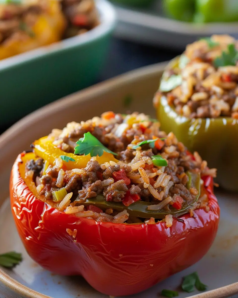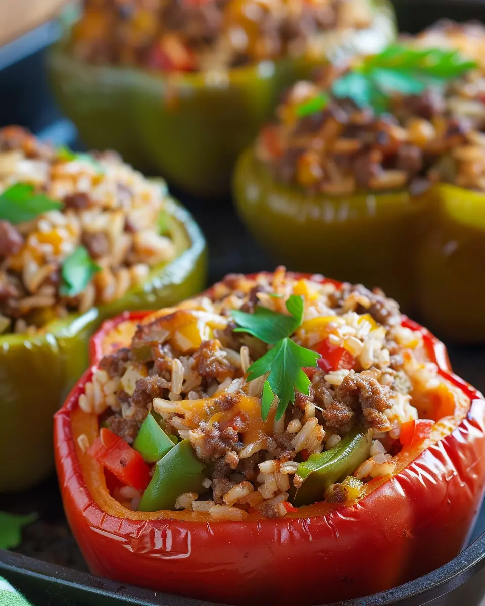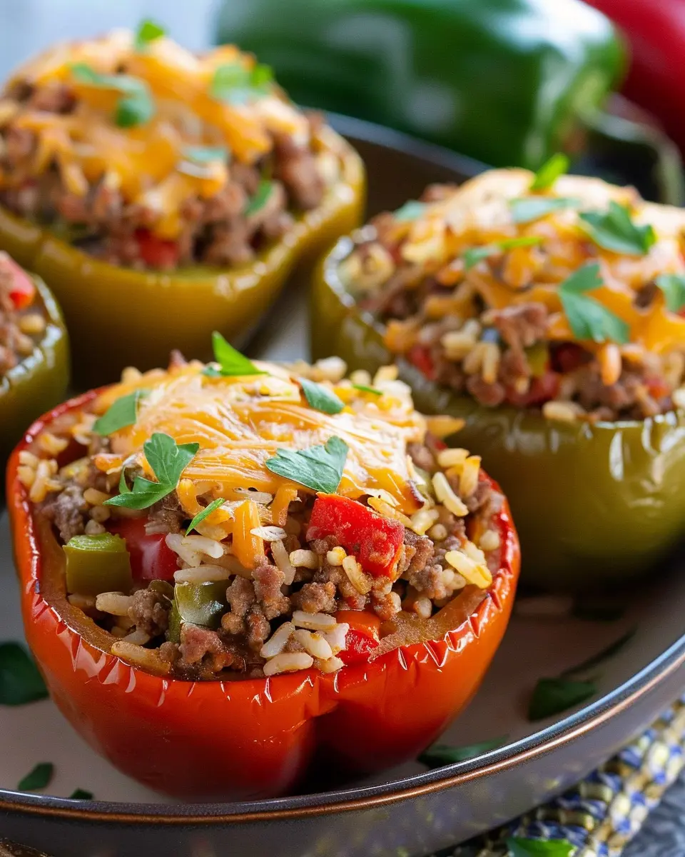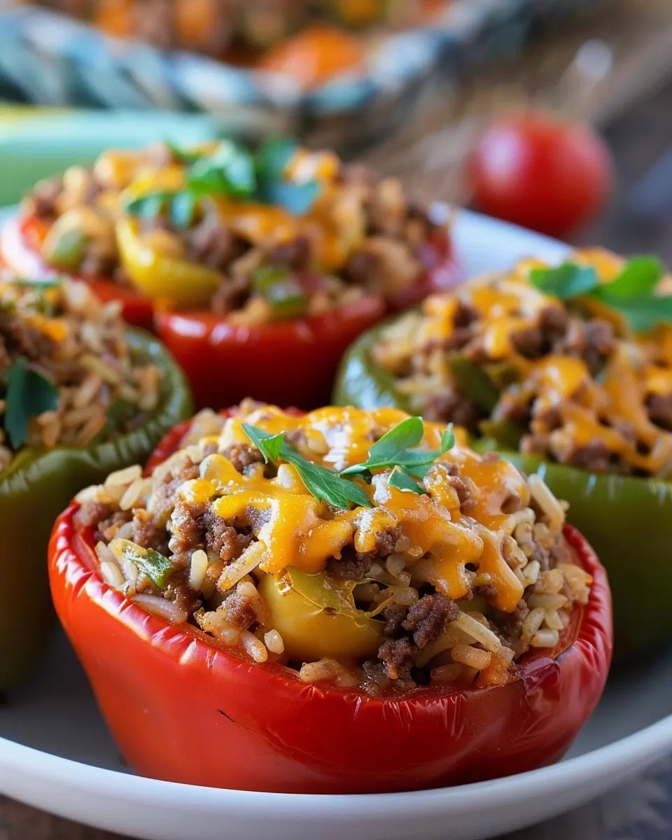 Keywords: Easy Stuffed Bell Peppers, Ground Beef Recipes, Comfort Food