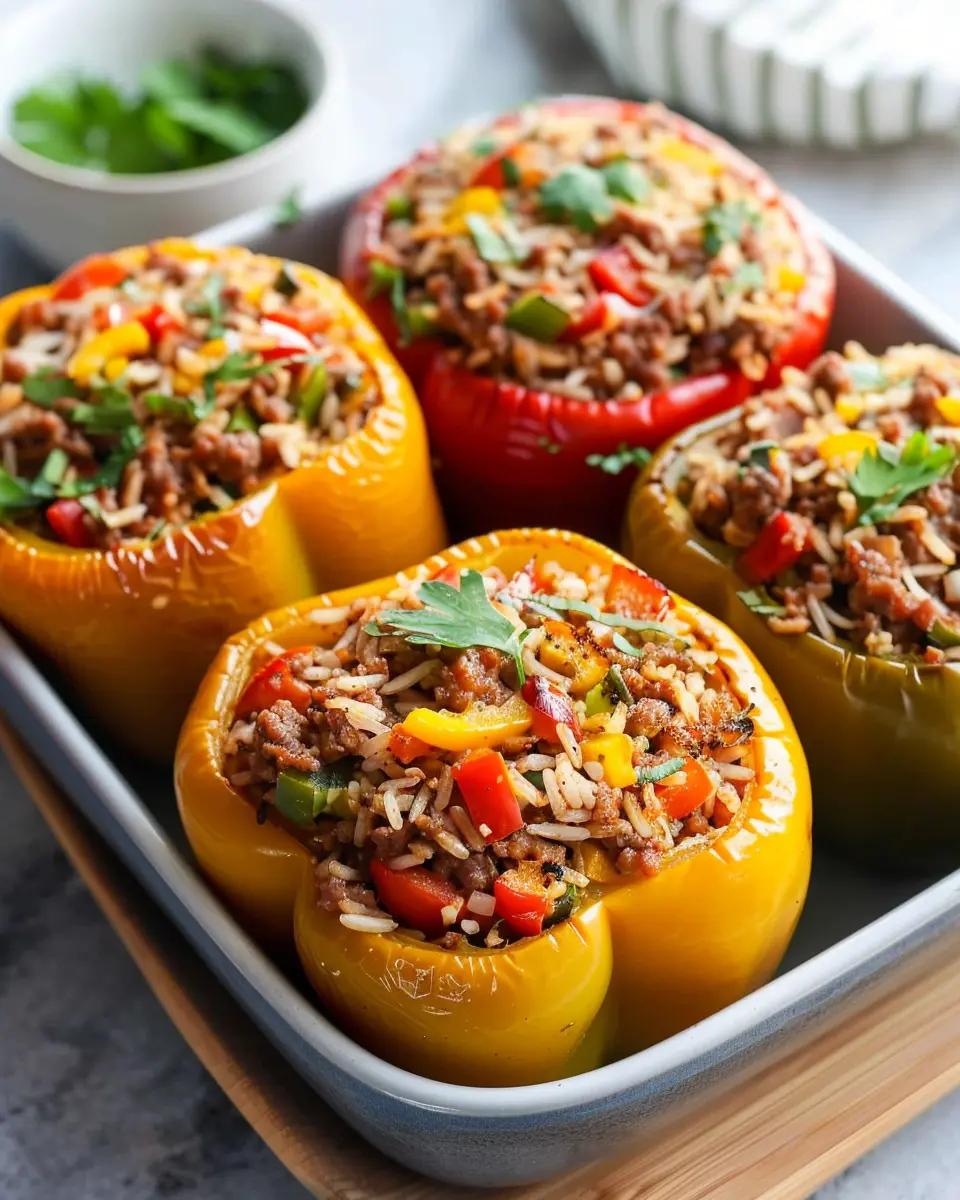 One serving of these easy stuffed bell peppers typically holds around 350–400 calories. Perfect for a balanced meal without overindulging!