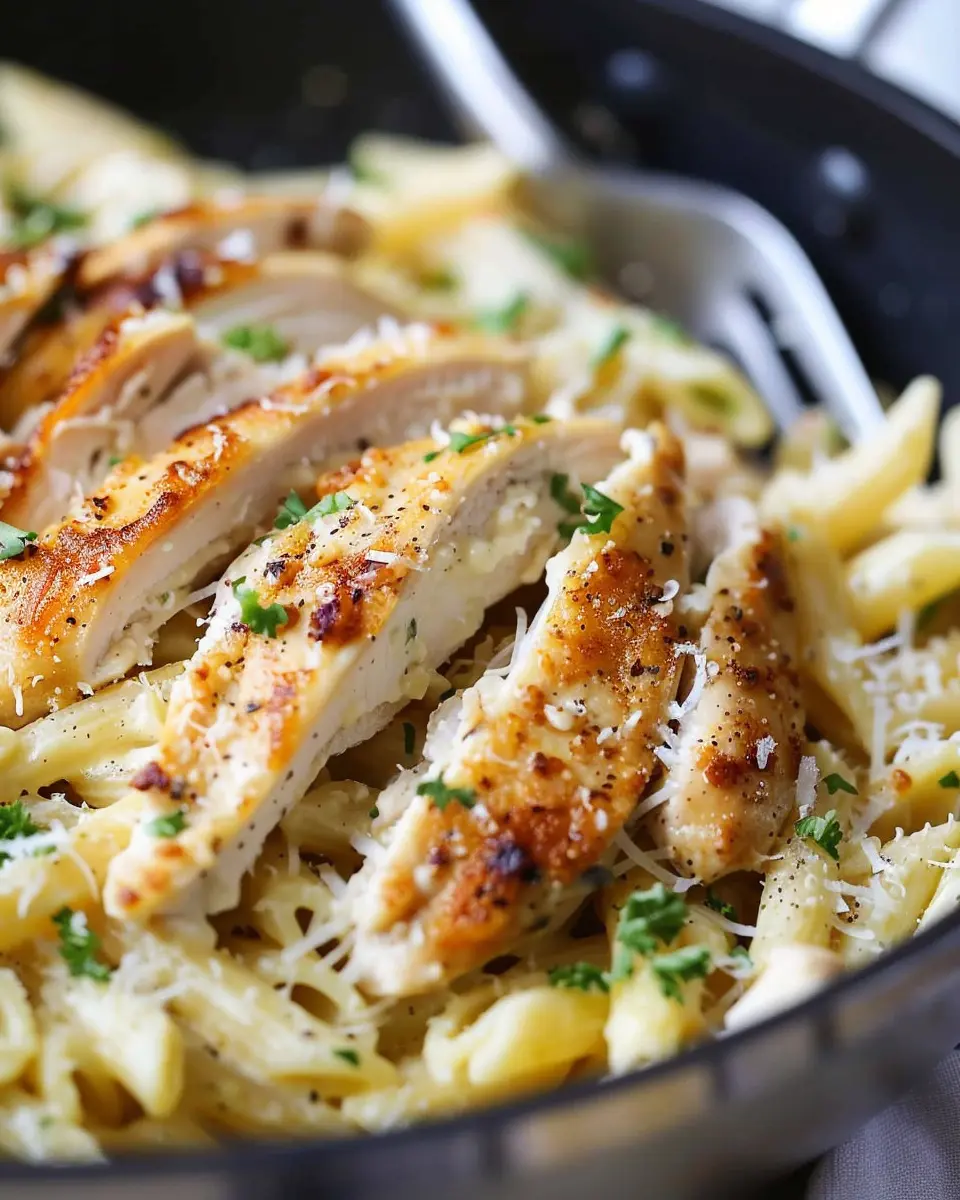 To make your Garlic Parmesan Chicken Pasta stand out, start with the right chicken preparation. Use boneless, skinless chicken breasts for tenderness. Marinate them in olive oil, garlic, and herbs for at least 30 minutes. This not only infuses flavor but also helps keep the chicken juicy while cooking. For a perfect sear, ensure your skillet is hot before adding the chicken—this creates a delightful crust that locks in moisture. Cook until golden brown, then allow it to rest. This step is crucial; resting helps the juices redistribute, making every bite succulent.