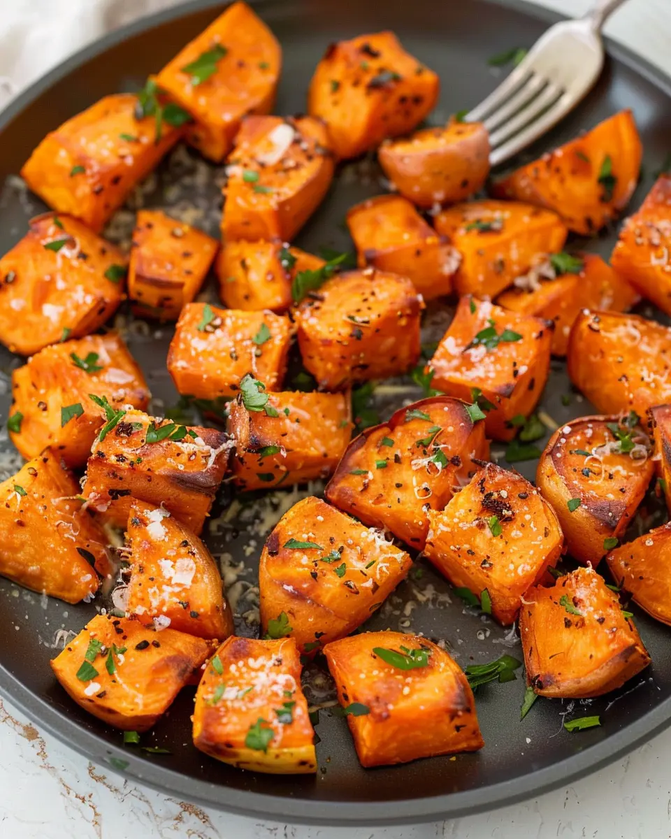 Garlic Parmesan Roasted Sweet Potatoes: The Best Comfort Side Dish