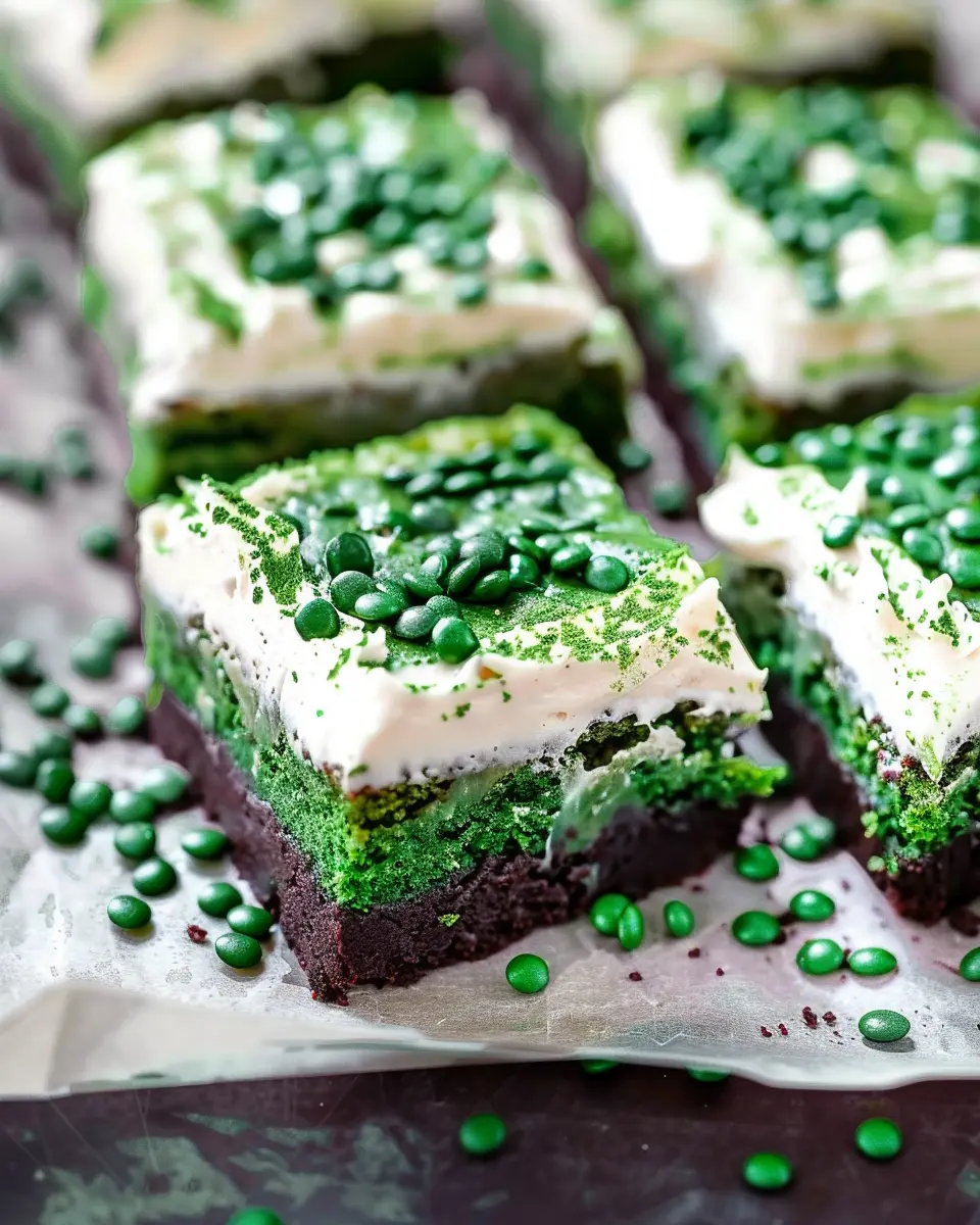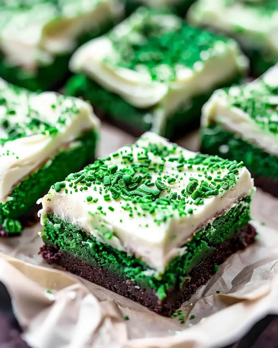 Keywords: Green Velvet Brownies, Cream Cheese Frosting, Indulgent Treat