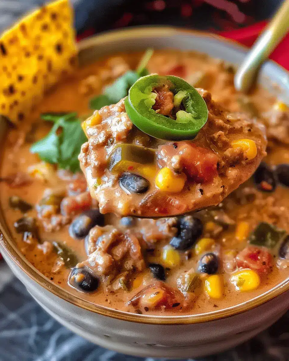 Another exciting aspect of our creamy taco soup is its versatility. You can easily customize it according to your taste preferences or dietary restrictions. Whether you’re a vegetarian looking for a meat substitute or someone who loves a little extra spice, this soup can adapt to your needs. Ingredients like bell peppers, black beans, and corn not only enhance the flavor but boost the nutritional profile as well. Plus, making a large batch means you’ll have leftovers ready for lunch the next day—talk about a winning combo!