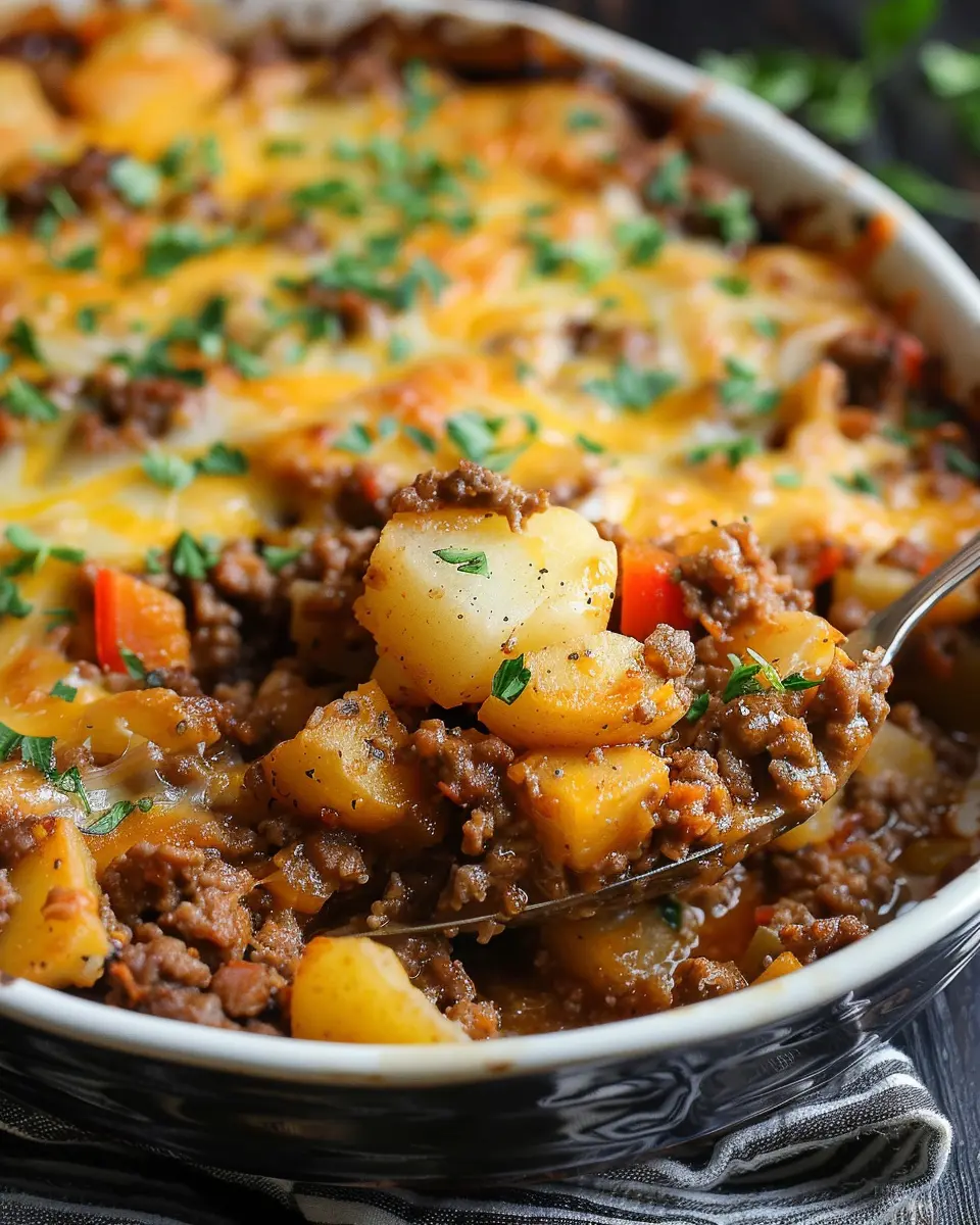 Garnishing is a fun way to personalize your hobo casserole ground beef recipe easy. Sprinkle fresh herbs like parsley or chives for a pop of color and freshness. Crumbled feta or cheddar cheese can add a delightful creaminess at the end. For a bit of crunch, try topping it with crushed tortilla chips or crispy Turkey Bacon bits for added flavor. Need an extra zing? A dollop of sour cream or a drizzle of sriracha can take your dish to the next level.