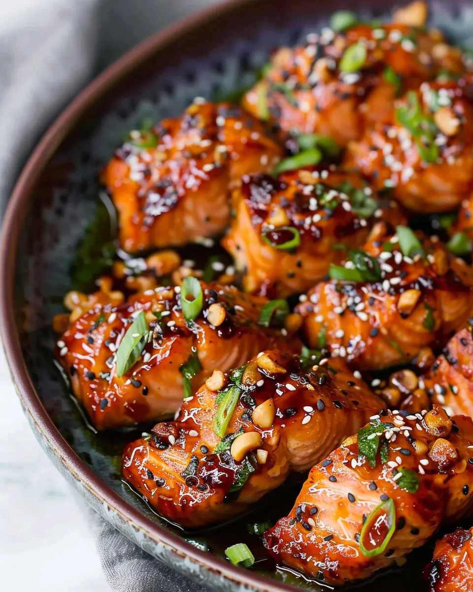 - Choose fresh salmon: Start with fresh salmon fillets, cutting them into bite-sized cubes for even cooking and better flavor absorption.