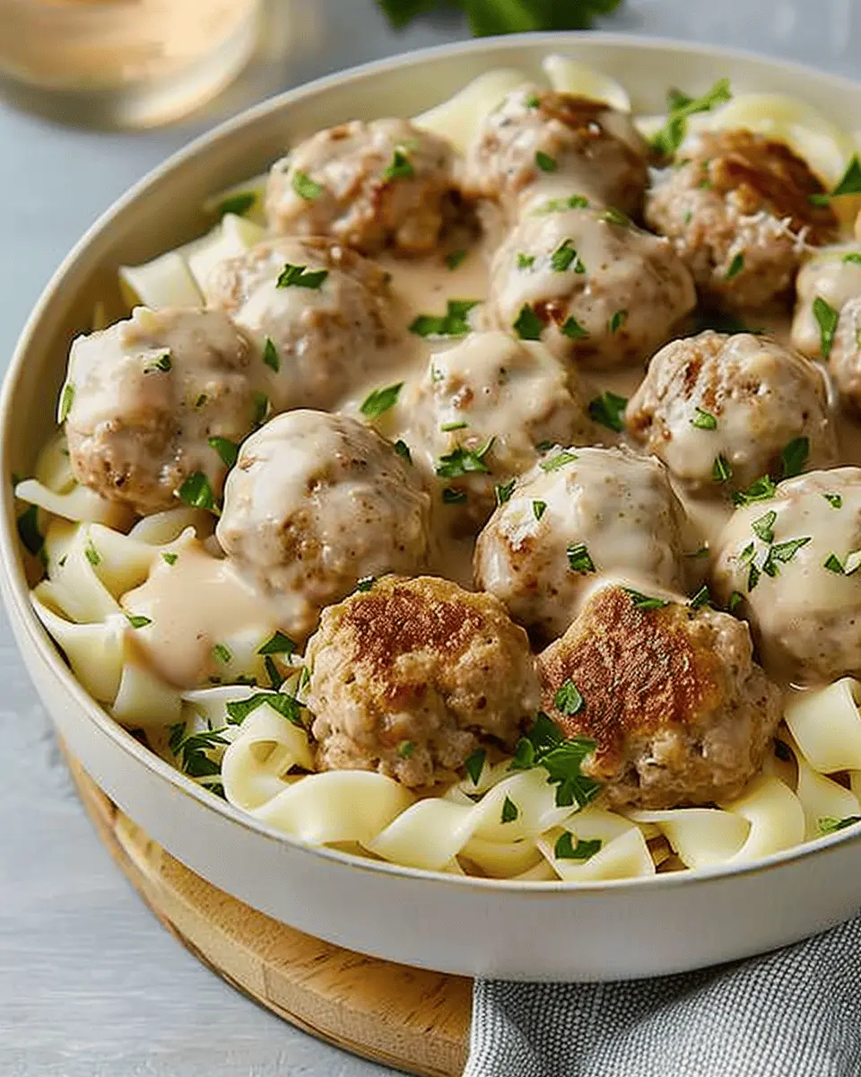 • Egg Noodles: Cooked al dente, they provide a perfect base for meatballs and gravy.