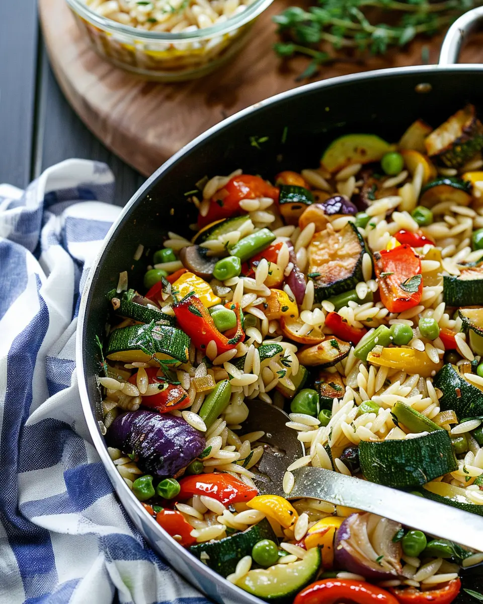 Once prepped, the delightful cooking process takes around 20-25 minutes. You’ll start by sautéing the roasted vegetables and cook the orzo to perfection in a separate pot. If you’re multitasking, you can roast the veggies while the orzo cooks; it’s a perfect timing dance!