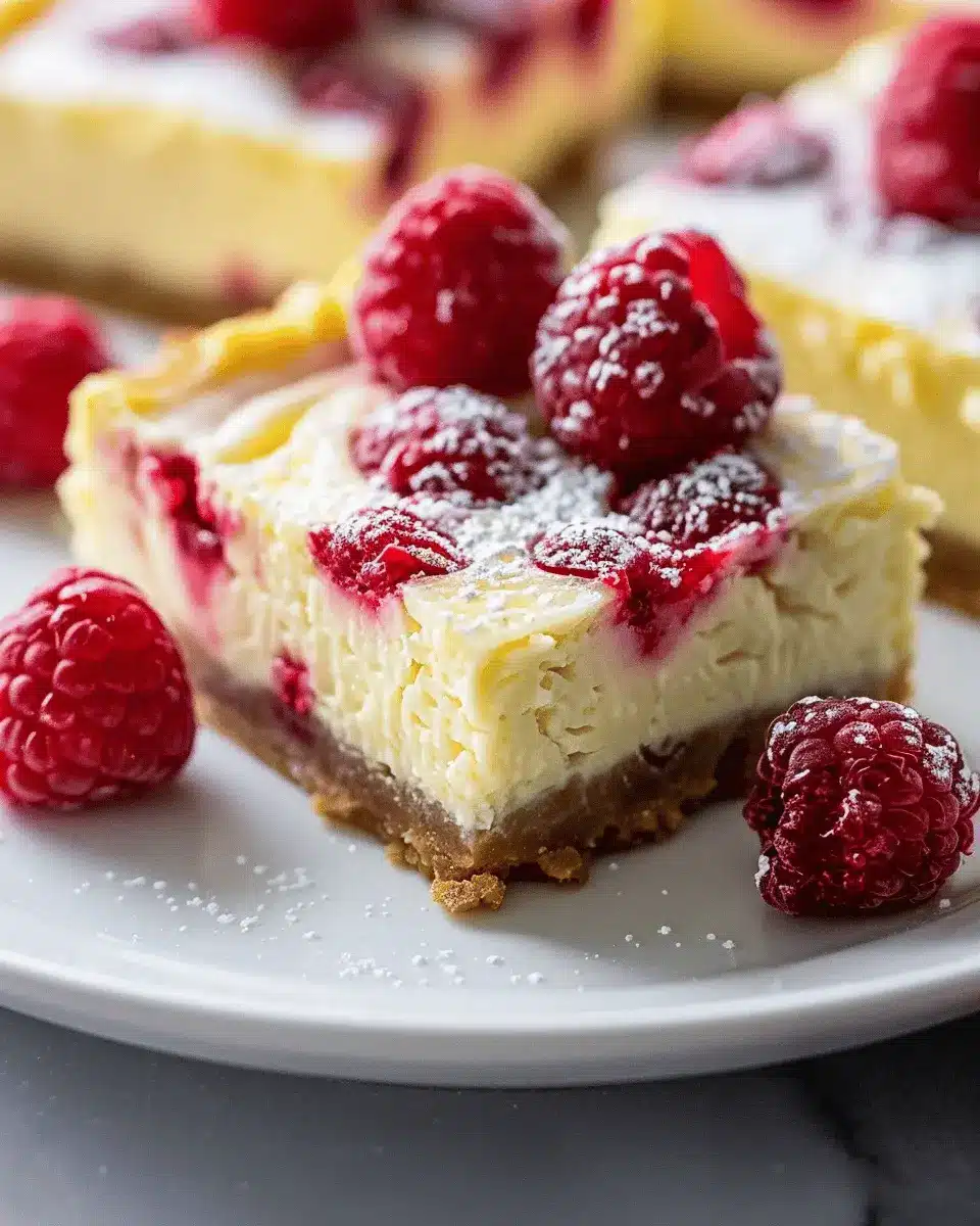 If you love blueberries, consider making lemon blueberry cheesecake bars. Just swap the raspberries for fresh or frozen blueberries. The tartness of the lemons pairs beautifully with the sweet blueberries, creating a perfect balance of flavors. Try adding a sprinkle of lemon zest over the top before baking for an extra citrusy kick! This version is not only vibrant in color but also packs a powerful antioxidant punch.