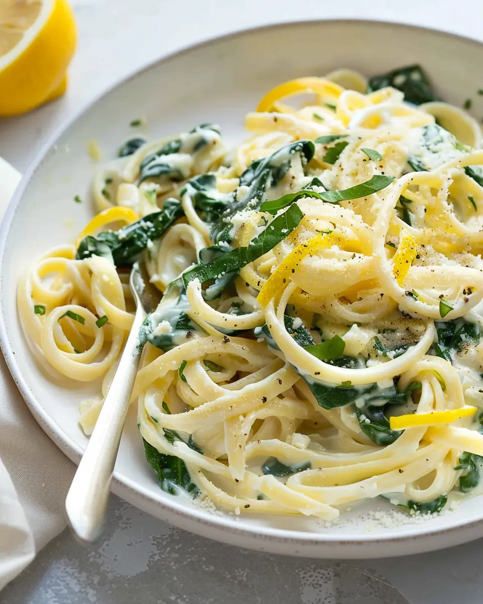 Keywords: Lemon ricotta pasta, quick comfort dish, spinach pasta, lemon pasta