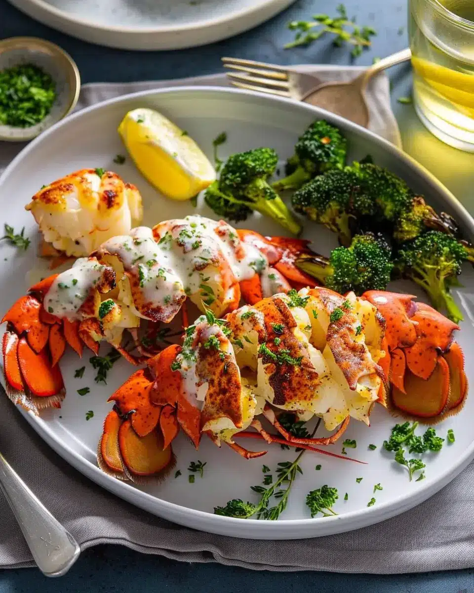 Presentation is key to creating that “wow” factor. Start by placing the lobster tail slightly off-center on the plate for an elegant look. Surround it with the roasted baby broccoli and drizzle creamy garlic butter sauce artfully around the plate. Garnishing with fresh herbs, like parsley or dill, adds a lovely burst of color.