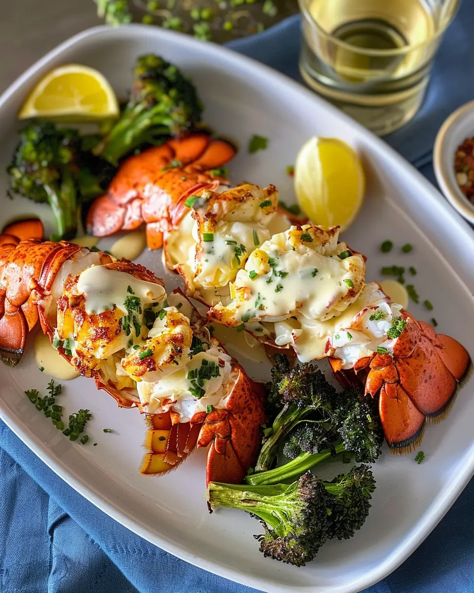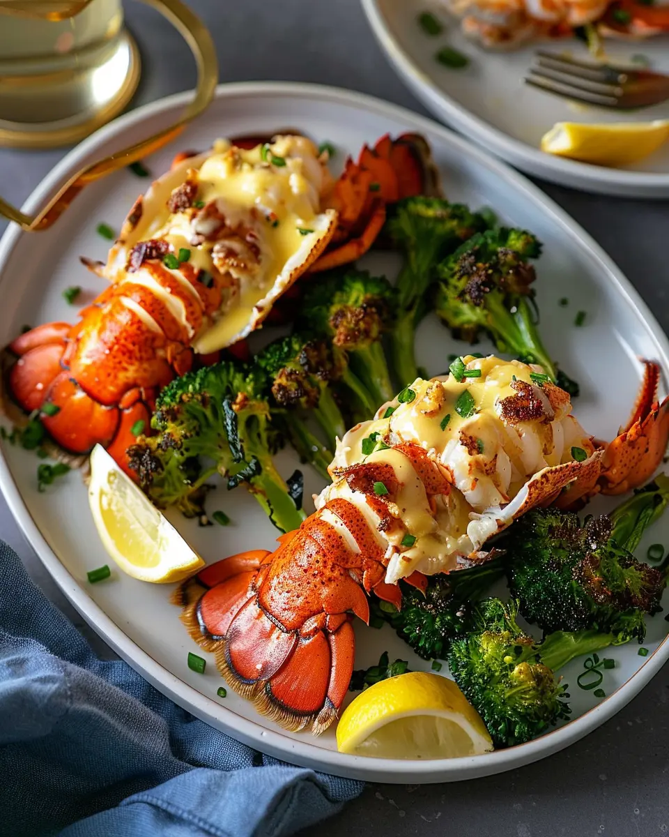 This indulgent lobster tails dish features a creamy garlic butter sauce and is accompanied by roasted baby broccoli, making it a perfect easy dinner. Indulge in rich flavors and delight in a gourmet presentation that anyone can create!