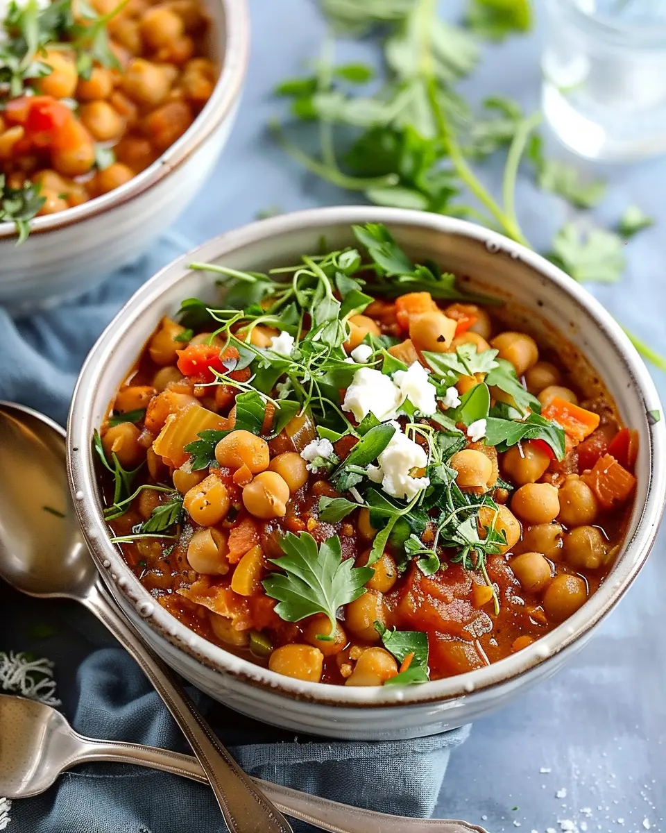A hearty Moroccan Chickpea Stew that warms the soul with its rich flavors and comforting ingredients.