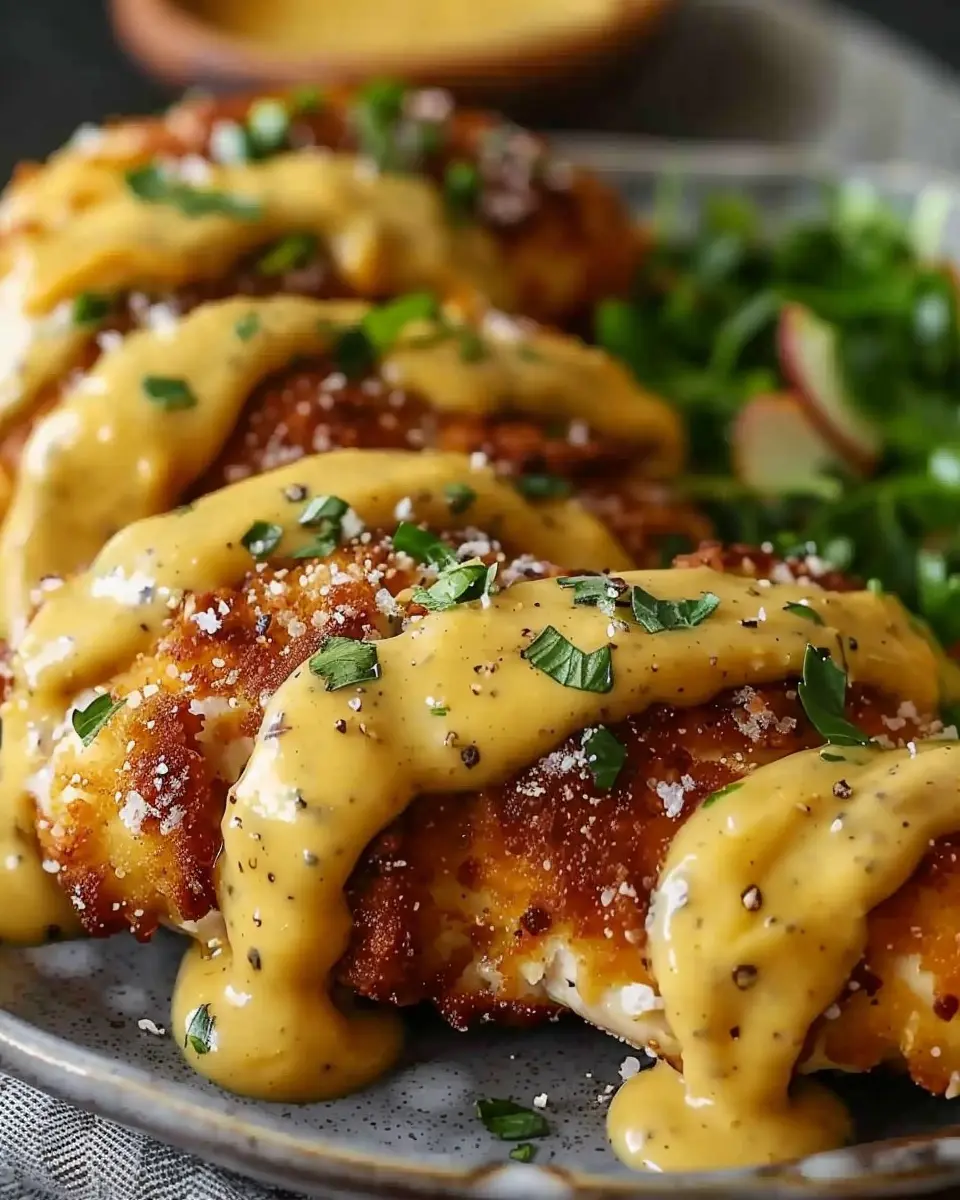 Indulge in this delicious Pretzel Chicken with Mustard-Cheddar Sauce, an easy yet satisfying dish that combines crunchy pretzels with a creamy, tangy sauce.