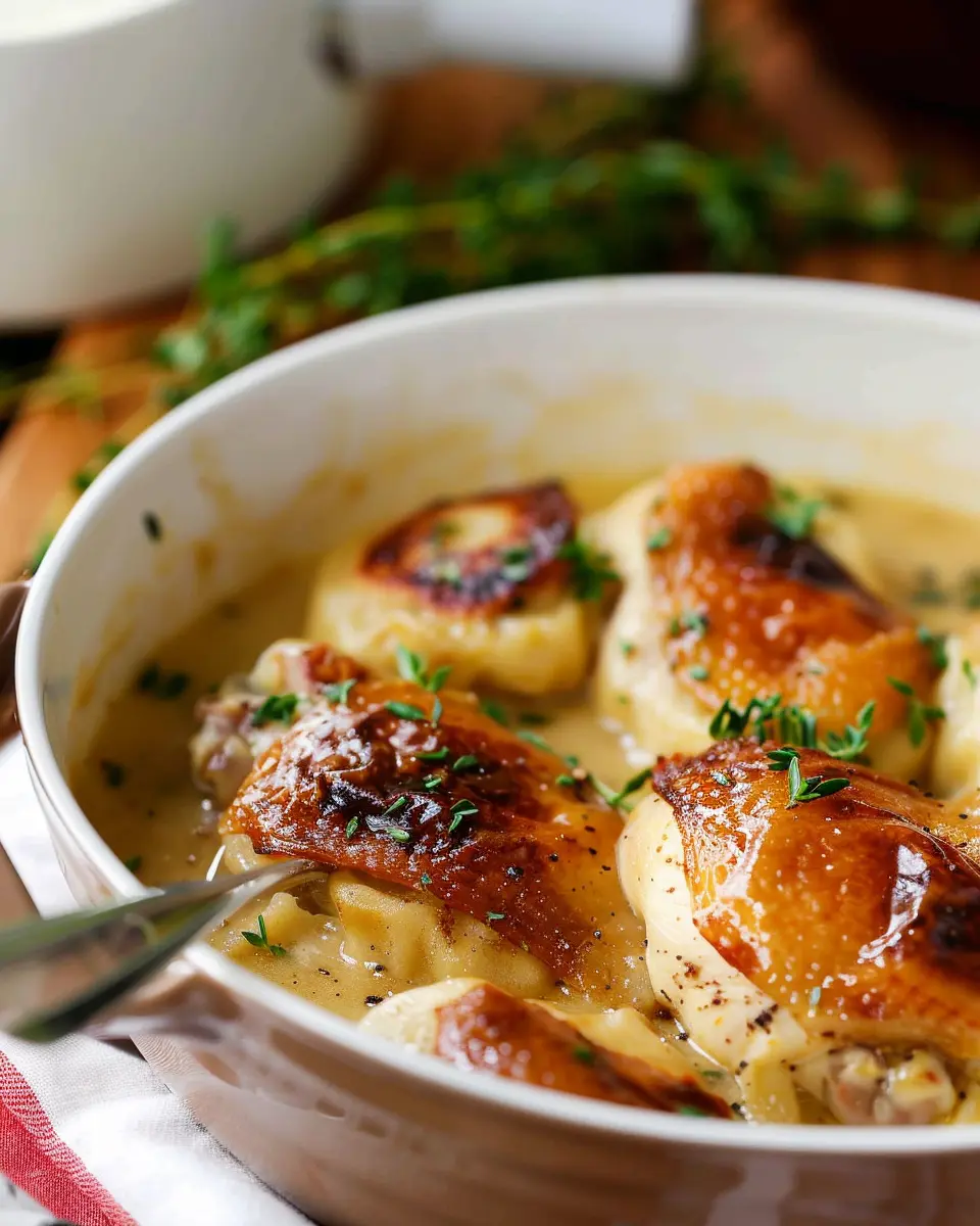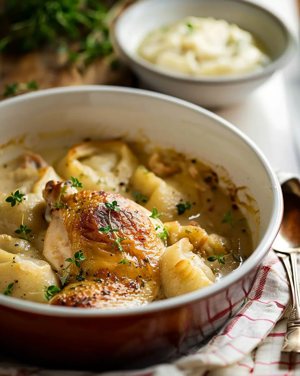 For a cozy feel, serve your rotisserie chicken and dumplings in shallow bowls. This not only makes it easy to dig in but also showcases the beautifully cooked ingredients.