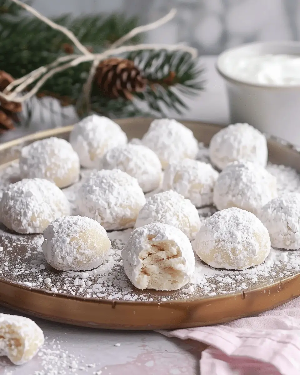 • Festive Platter: Arrange your snowball cookies on a decorative plate. Consider adding accents like pine branches or festive ornaments to enhance the seasonal vibe.
