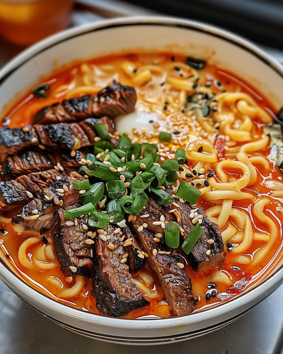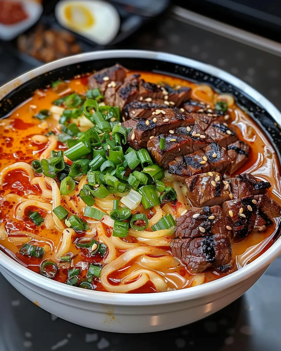 Keywords: Spicy Korean Ramen, Grilled Beef, Creamy Sauce