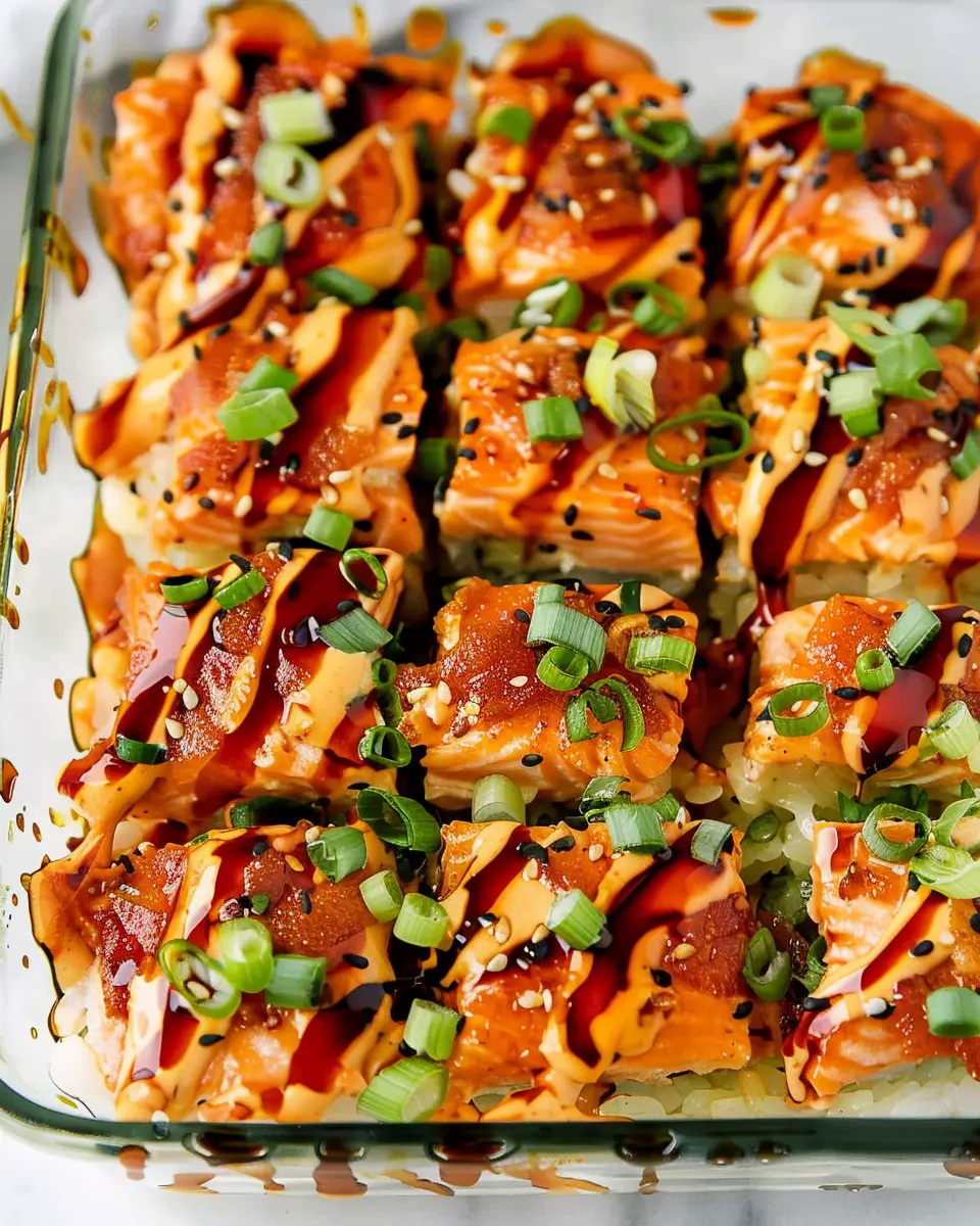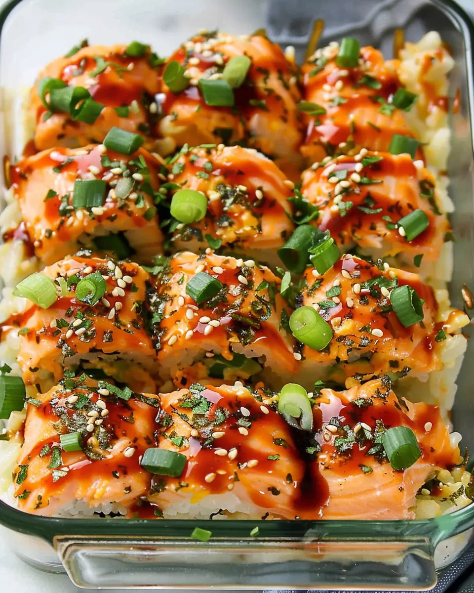 This spicy salmon sushi bake is a warm, cozy dish perfect for gatherings or simple weeknight dinners. Enjoy the process, make it your own, and share this delightful dish with those you love!