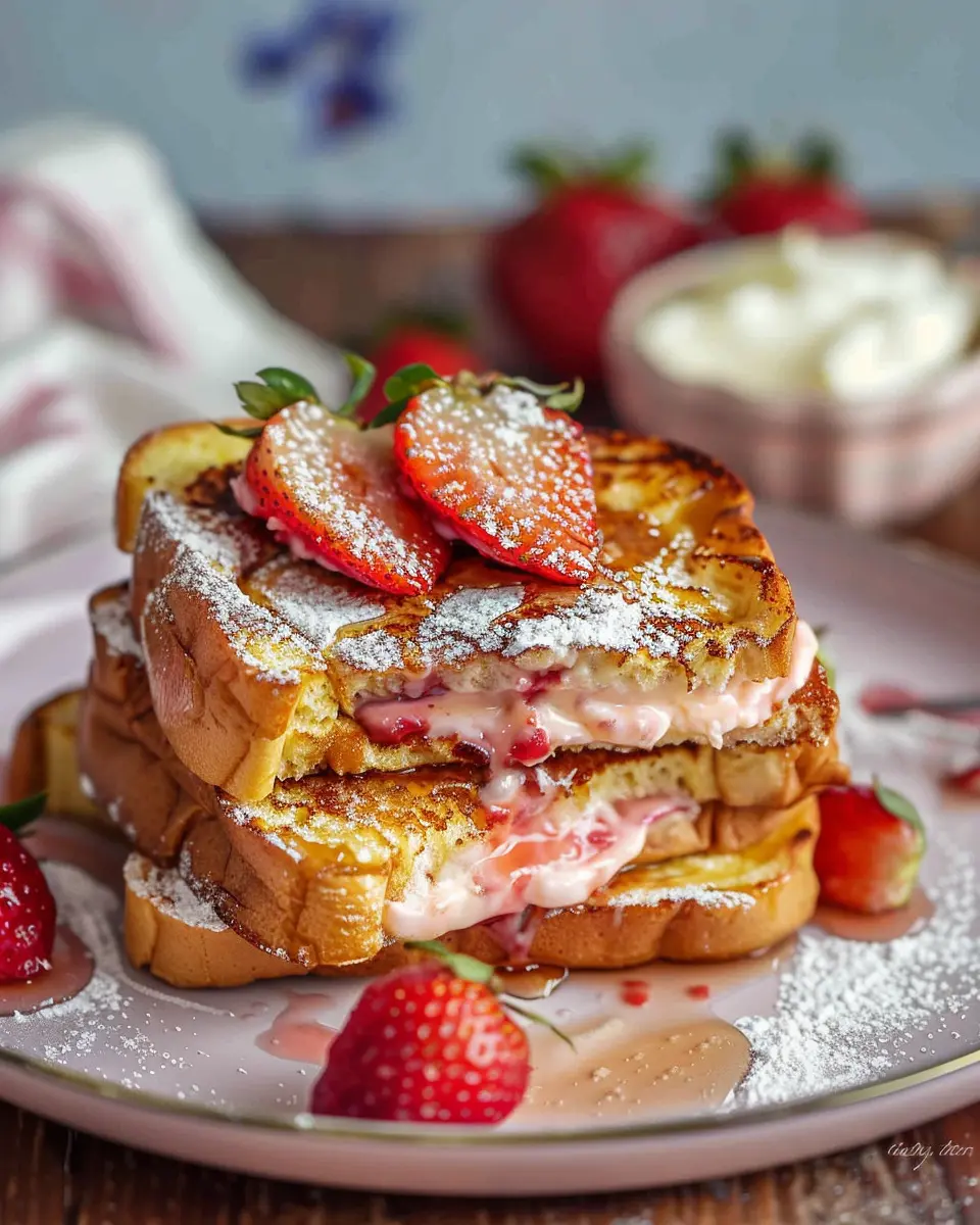 Rich Flavor Profile: The combination of sweet strawberries and smooth cream cheese inside the warm French toast creates a delightful contrast that tantalizes your taste buds. Plus, who doesn’t love adding a sprinkle of powdered sugar or a drizzle of maple syrup to elevate the experience?