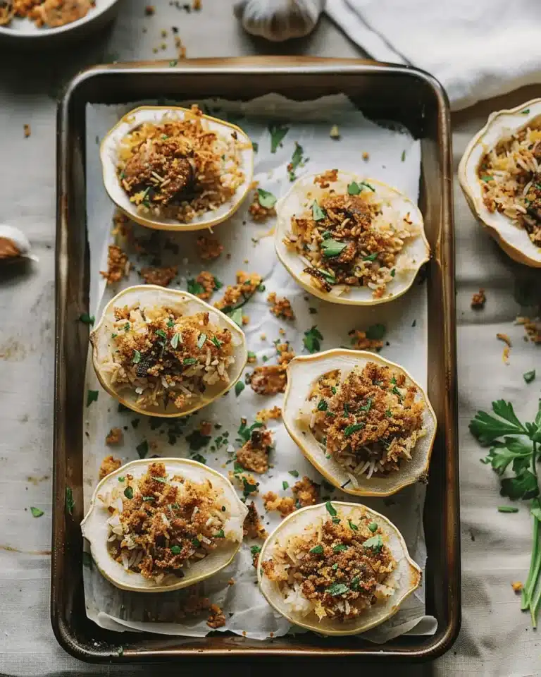 Stuffed Patty Pan Squash with Turkey Bacon and Beef Rice Delight